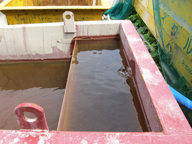 2011年7月1.5m3ノッチタンク(流入側)、排水状況