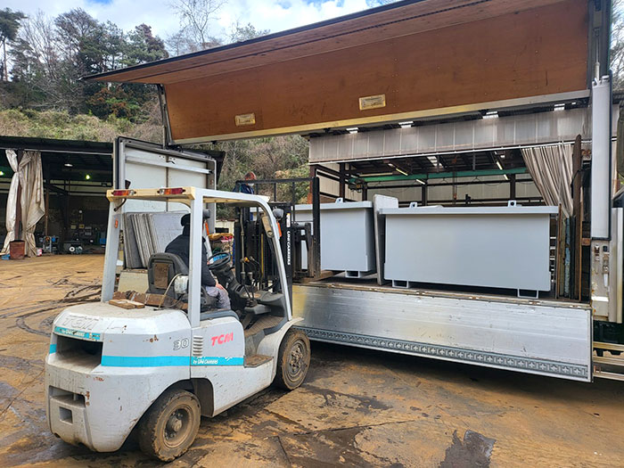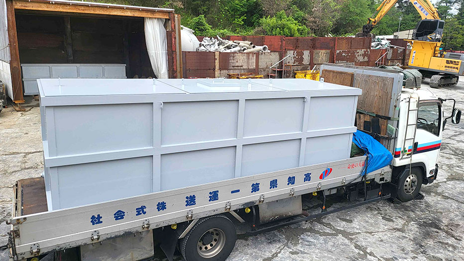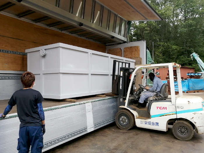 ノッチタンク・ウォータータンクの制作風景や運送時の様子など様々なシーンを写真でご紹介いたします。 各画像はクリックすると大きな写真をご覧頂くことができます。 大きく表示した状態で左右の矢印をクリックするか、キーボードの矢印を押す事で写真を切り替える事ができます。