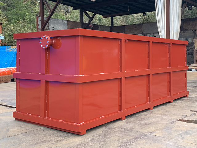 工事現場等で発生する泥水や濁水に含まれる泥や土をタンク内で沈殿させることにより、Vノッチから上水を分離排水します。 大規模の汚水処理による、迅速な給水と排水にご利用ください。 フォークリフトによる移動と4点の吊ピース装着により、クレーンによる移動を可能としています。 |